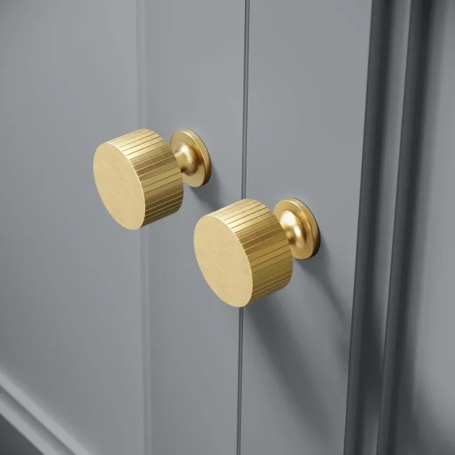 Monaco Dove Grey Combination Vanity Basin and Hudson Toilet with Wooden Seat 1500mm - Brushed Brass Accents