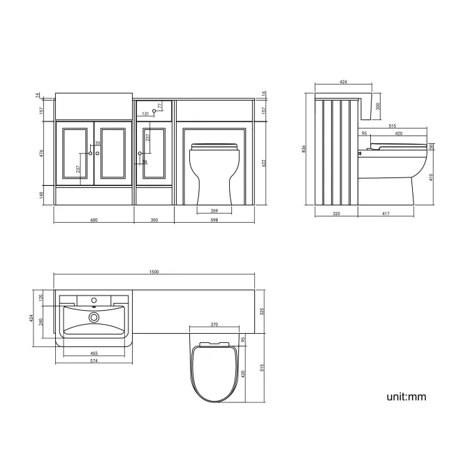 Monaco Graphite Grey Combination Vanity Traditional Basin with Marble Top and Seattle Toilet 1500mm - Brushed Brass Accents