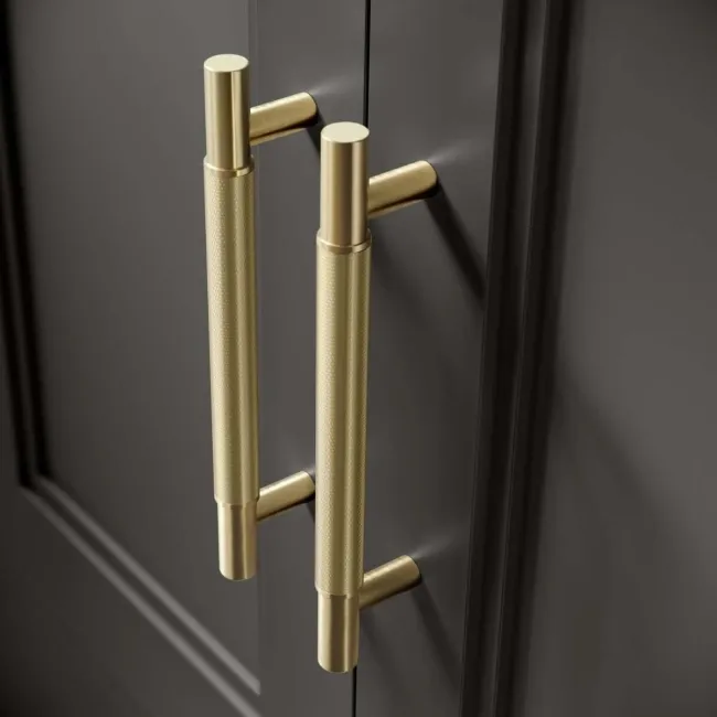 Monaco Graphite Grey Combination Vanity Traditional Basin with Marble Top & Hudson Toilet with Wooden Seat 1500mm - Brass Knurled Handles