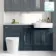 Monaco Inky Blue Combination Vanity Basin with Marble Top and Boston Toilet 1500mm - Brass Knurled Handles