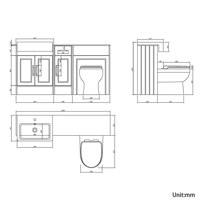 Monaco Inky Blue Combination Vanity Basin with Marble Top and Seattle Toilet 1500mm - Brass Knurled Handles