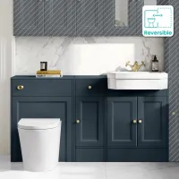 Monaco Inky Blue Combination Vanity Traditional Basin and Boston Toilet 1500mm - Brushed Brass Accents