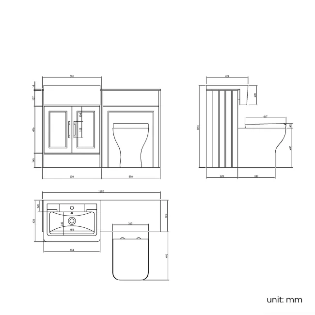 Monaco Inky Blue Combination Vanity Traditional Basin with Marble Top & Atlanta Toilet 1200mm - Brass Knurled Handles