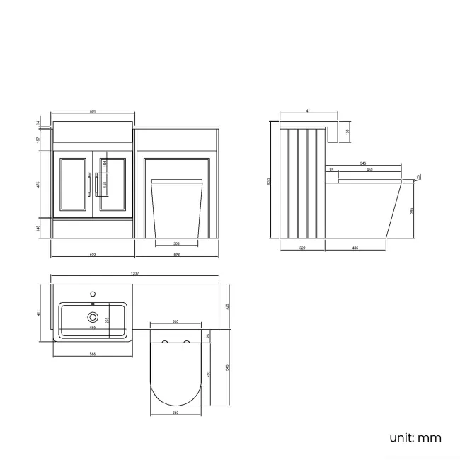 Monaco Midnight Green Combination Vanity Basin with Marble Top & Boston Toilet 1200mm - Brass Knurled Handles