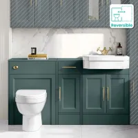 Monaco Midnight Green Combination Vanity Traditional Basin and Seattle Toilet 1500mm - Brass Knurled Handles