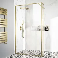 Munich Brushed Brass Framed 8mm Wet Room Shower Glass 1200mm & 250mm Return Panel