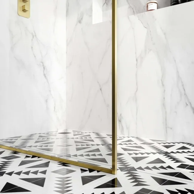 Munich Brushed Brass Framed Easy Clean 8mm Wet Room Shower Glass Panel 1400mm