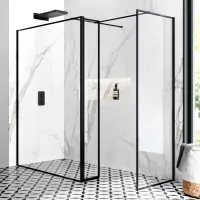 Munich Matt Black Framed 8mm Walk In Shower Enclosure 1400mm & 700mm Glass with Pivotal Return Panel