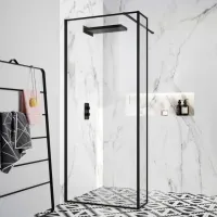 Munich Matt Black Framed 8mm Wet Room Shower Glass 900mm & 250mm Return Panel