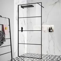 Munich Matt Black Grid Easy Clean 8mm Wet Room Shower Glass Panel 1000mm