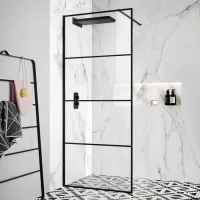 Munich Matt Black Grid Easy Clean 8mm Wet Room Shower Glass Panel 800mm