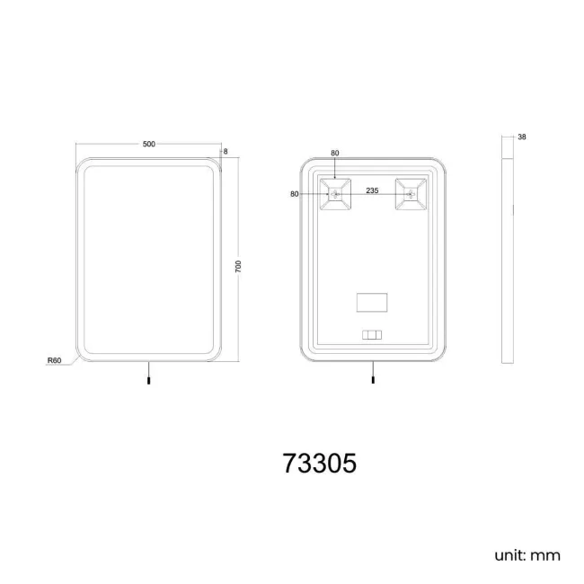 Olivia Battery Operated Brushed Brass Illuminated LED Mirror 700x500mm
