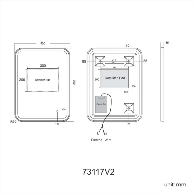 Olivia Black Framed Illuminated LED Mirror 700x500mm