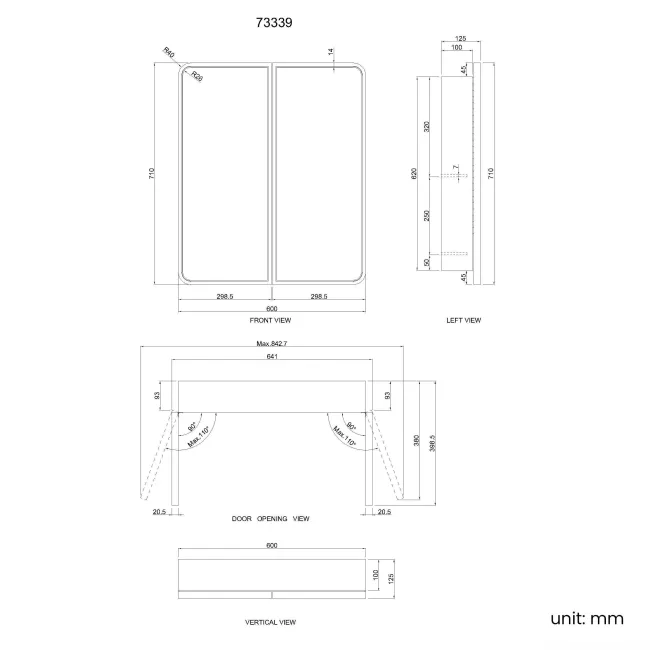 Olivia Black Framed Mirror Cabinet 710x600mm
