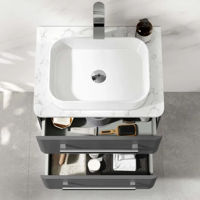 Omaha Slate Grey Wall Hung Drawer Vanity with Marble Top & Marin Basin 600mm