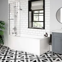 P Shaped 1700 Shower Bath with Front Panel & 6mm Easy Clean Screen with Rail - Left Handed
