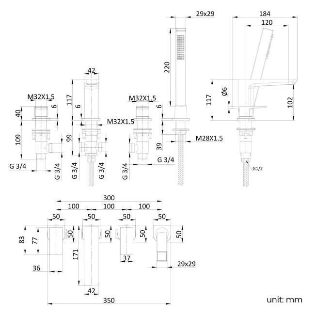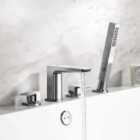 Ribble Chrome Deck Mounted 4TH Bath Shower Mixer Tap & Handheld Shower