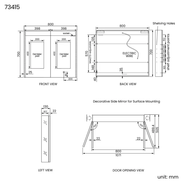 Selma Matt Black Illuminated LED Recessed Mirror Cabinet 700x800mm