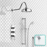 Shannon Premium Traditional Thermostatic Set - 200mm Head, Slider Shower & Bath Filler Waste