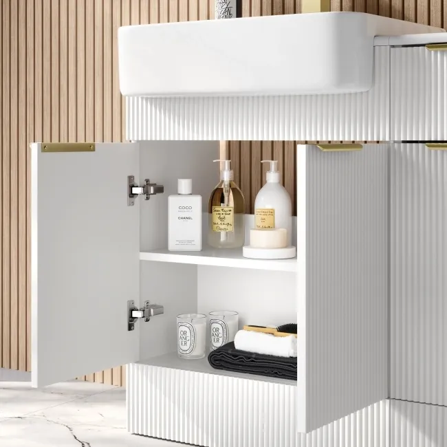 Sicily Fluted Coastal White Combination Vanity Basin and Aruba Toilet 1500mm - Brushed Brass Accents