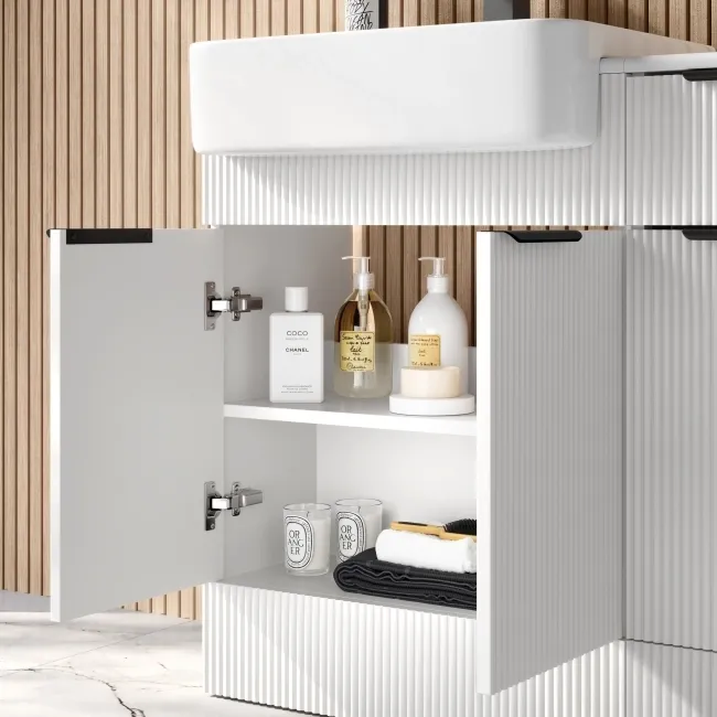 Sicily Fluted Coastal White Combination Vanity Basin and Miami Toilet 1500mm - Black Accents