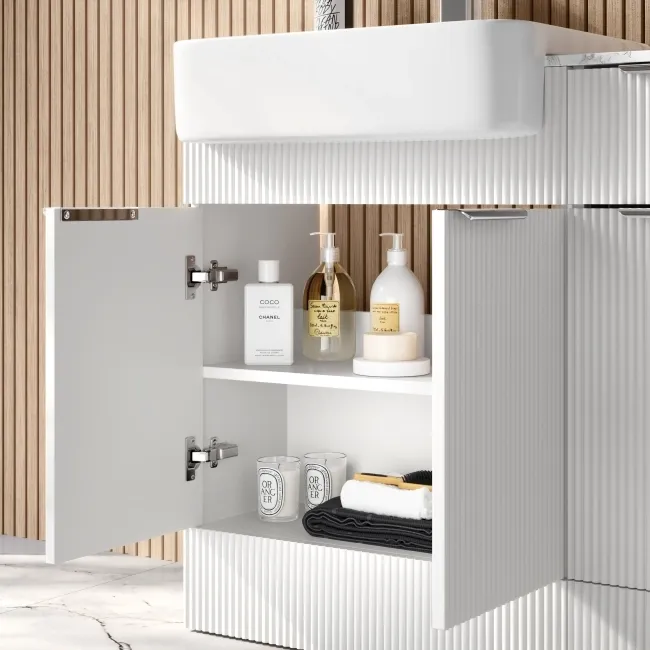 Sicily Fluted Coastal White Combination Vanity Basin with Marble Top & Houston Toilet 1500mm - Chrome Handles