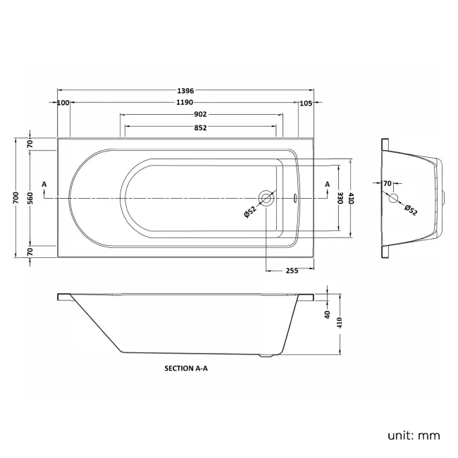 Bath inner depth