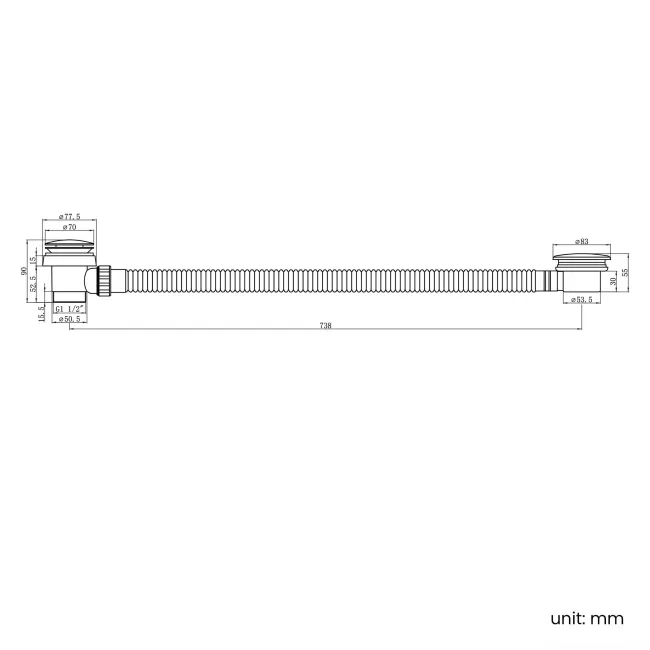 Standard Bath Click Clack Waste With Overflow - Gunmetal Grey