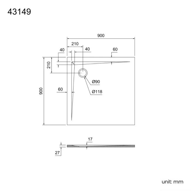 Sydney Low Profile Square Gloss White Stone Shower Tray 900x900mm