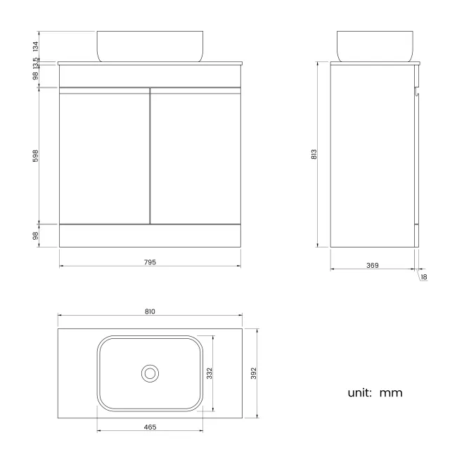 Trent Stone Grey Vanity with Marble Top & Curved Counter Top Basin 800mm